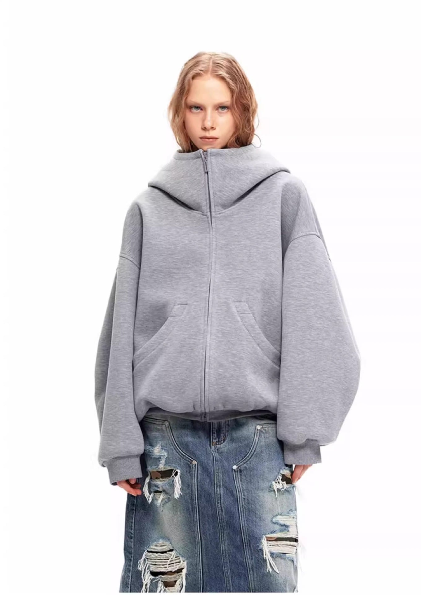 オーバーサイズジップアップパーカー
