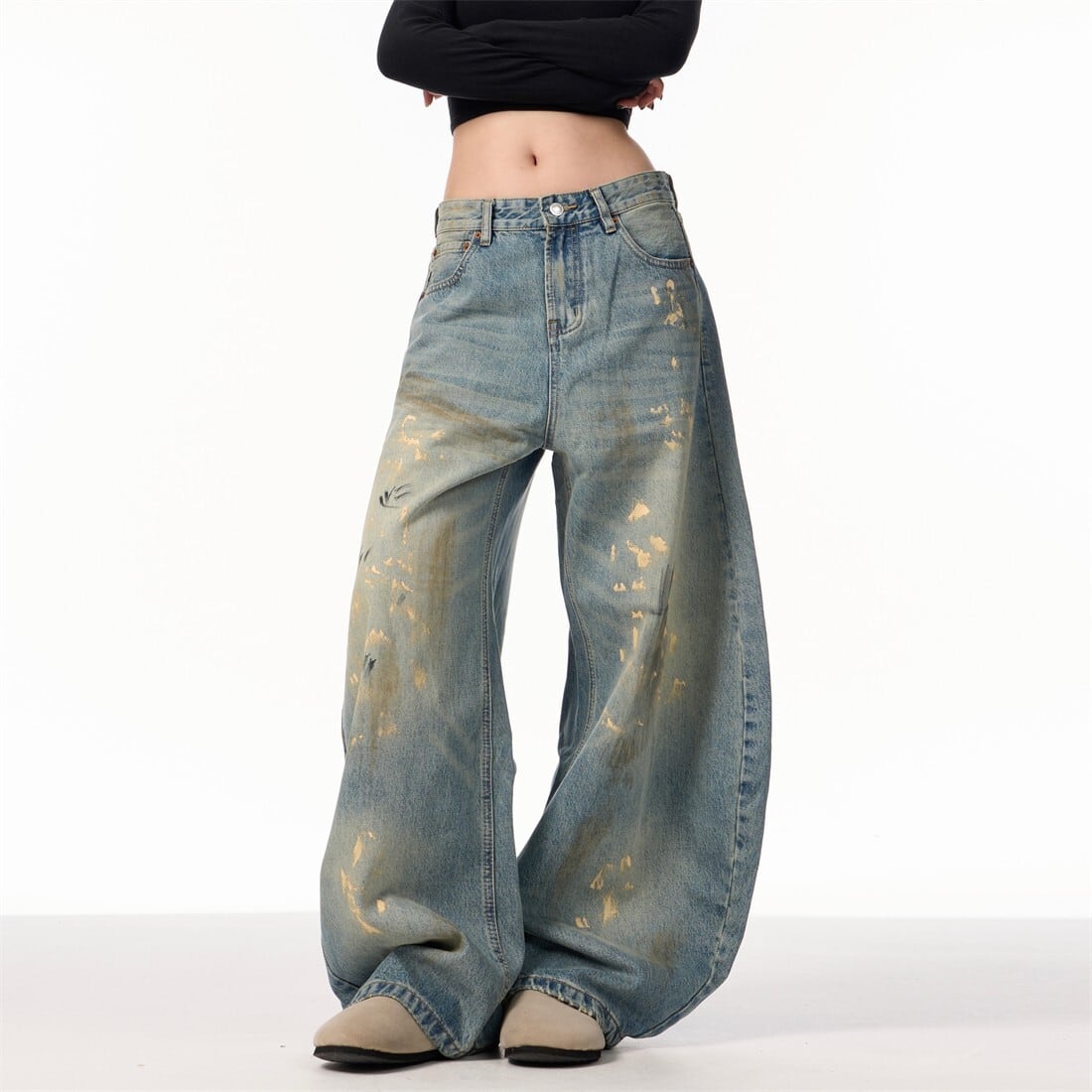 ヴィンテージウォッシュ ワイドデニムパンツ